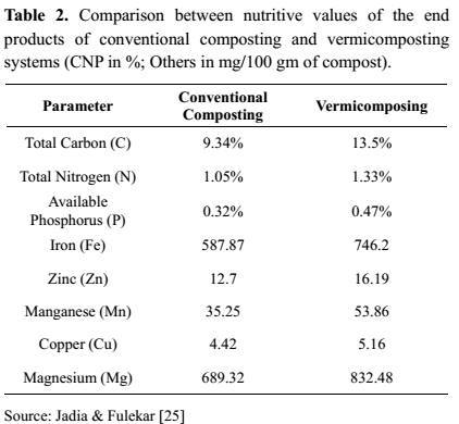 Jadia, C.D. and Fulekar, M.H. (2008) Vermicomposting of vegetable wastes: A biophysiochemical process based on hydro-operating bioreactor. African Journal of Biotechnology, 7(20), 3723-3730.