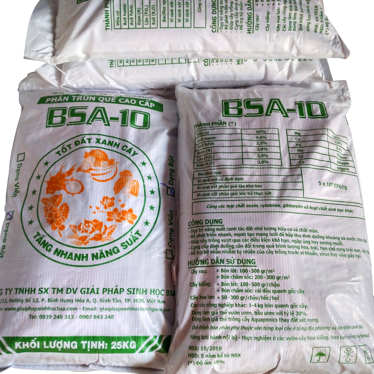 Phân trùn quế cao cấp BSA - những đặc điểm nổi bật Phân trùn quế chứa hàm lượng hữu cơ cao; có đầy đủ các nguyên tố đa, trung và vi lượng; giàu hệ vi sinh vật có lợi cho đất và cây trồng; giúp nông sản giữ được màu sắc, hương vị, chất lượng và năng suất ở một số loài hoa, rau, củ, trái cây cũng như một số loài cây ngũ cốc. Nghiên cứu cũng cho thấy, năng suất cây trồng khi sử dụng phân trùn quế cho hiệu quả cao hơn 30-40% so với phân hoá học.